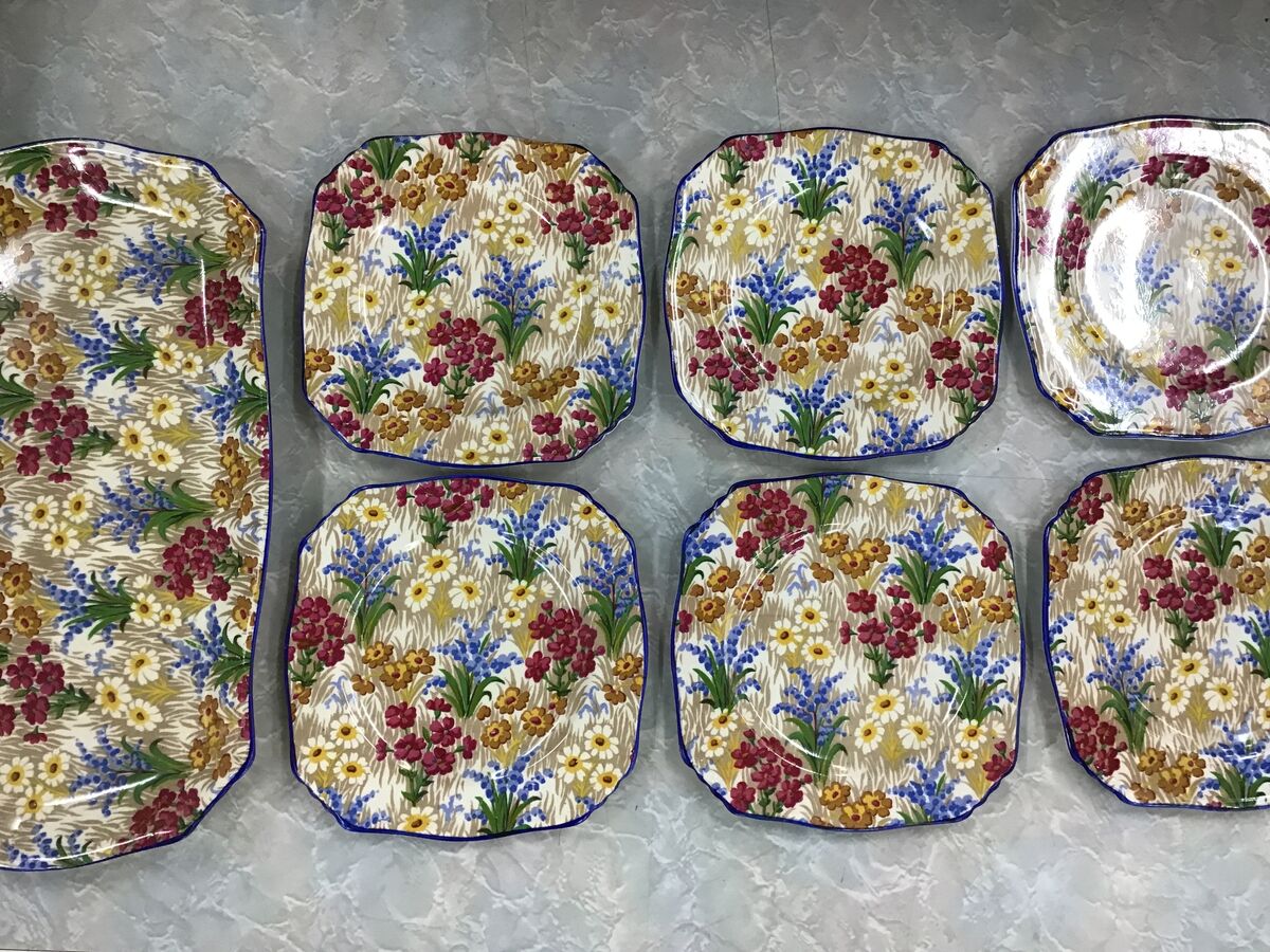 Gorgeous 7 piece chintz sandwich set by Royal Winton: