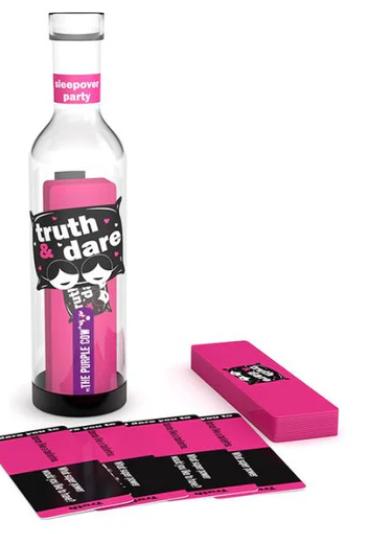 - Sleepover Party edition of The Purple Cow Truth & Dare card game in a bottle