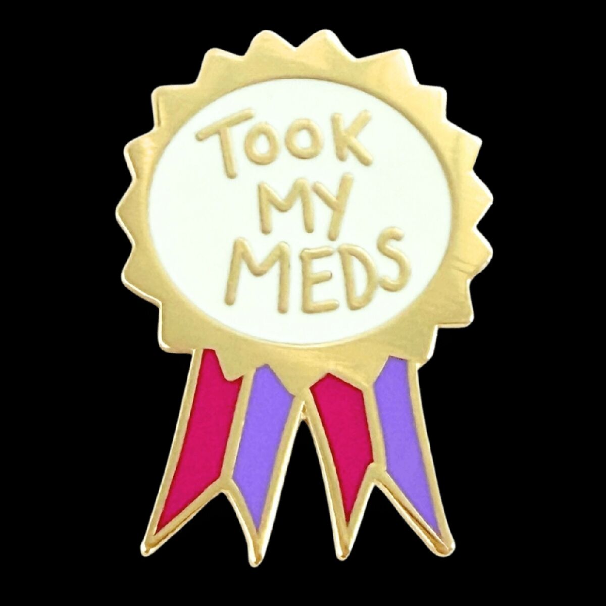 Wear this pin as a reminder for that inevitable moment when you say…”did I take my meds today?”