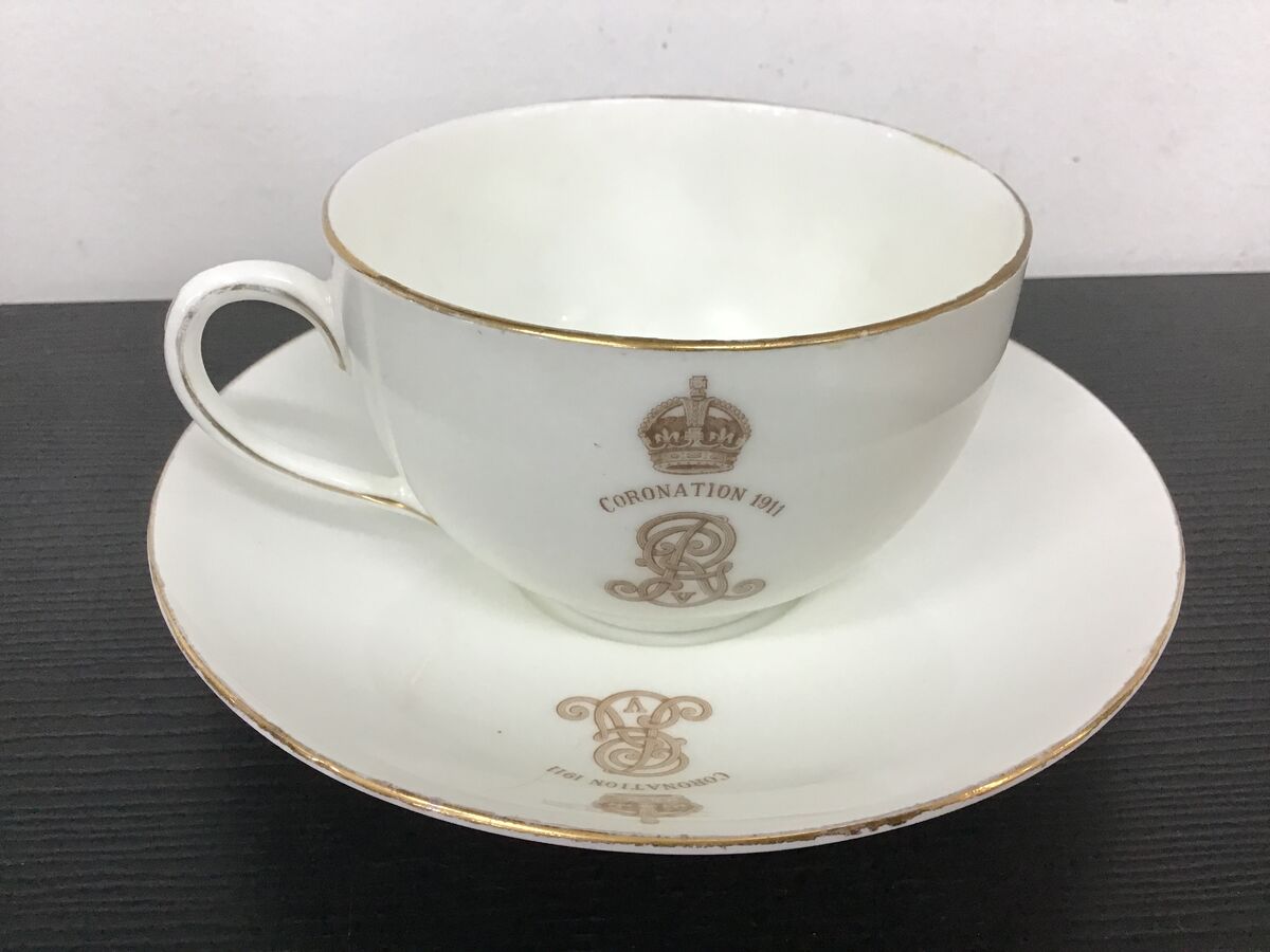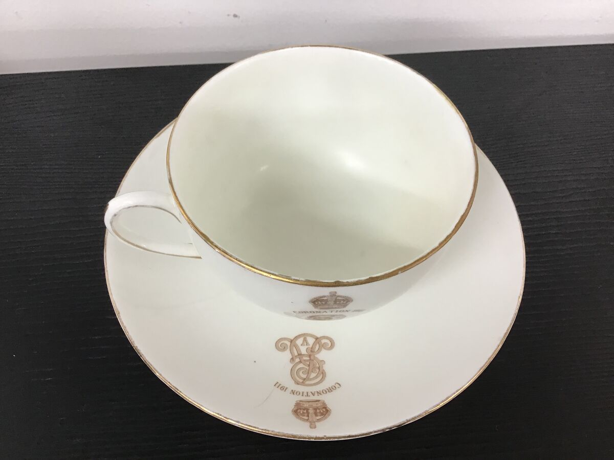 Royal Doulton tea cup and saucer commemmorating the 1911 Coronation of George V & Mary.