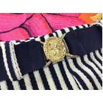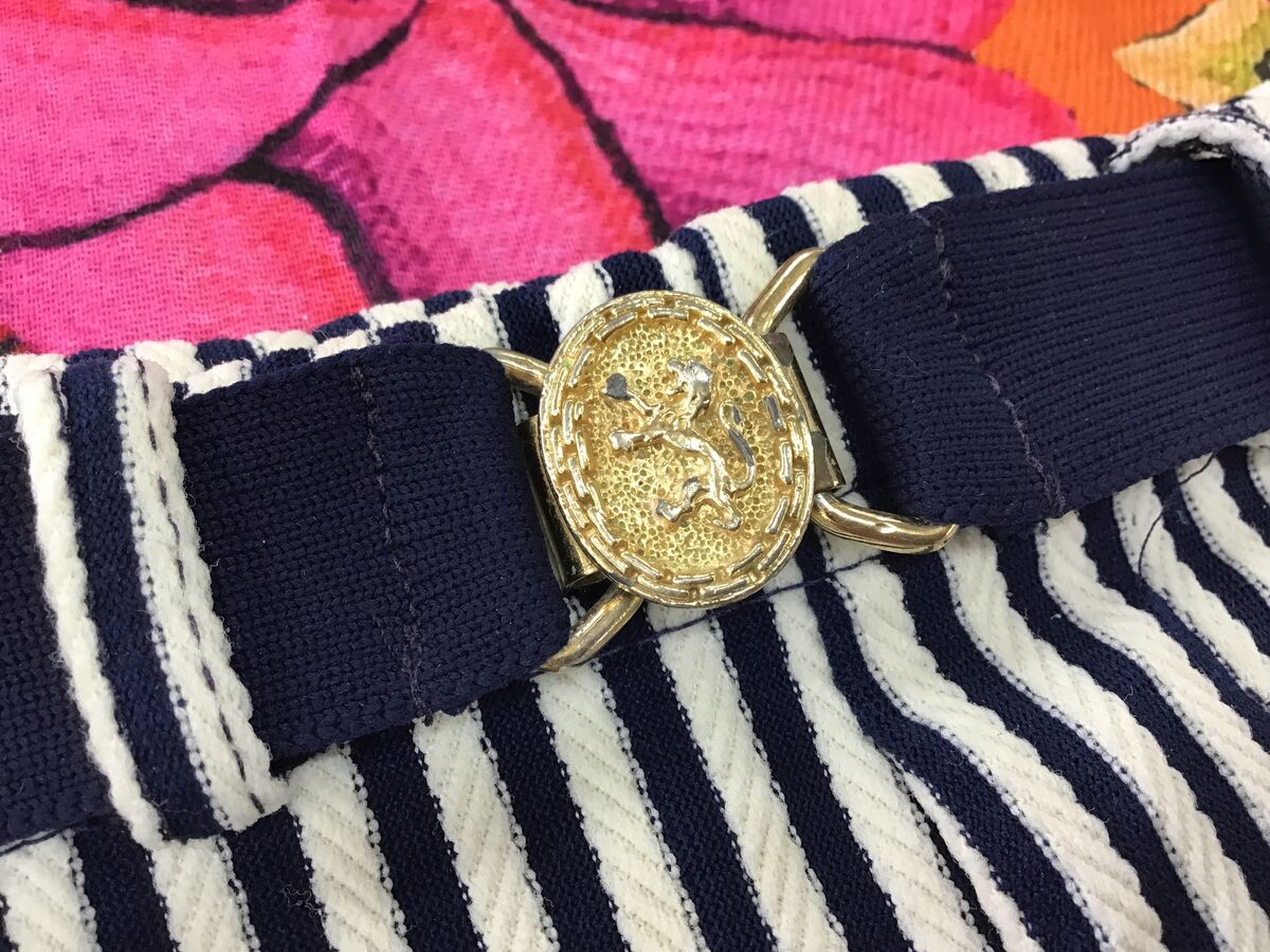 - Navy blue belt with gold tone fittings - the closure is decorated with an embossed lion motif