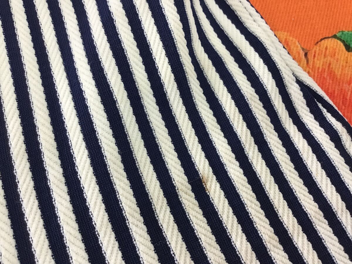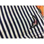 - Knitted fabric with white and navy blue vertical stripes