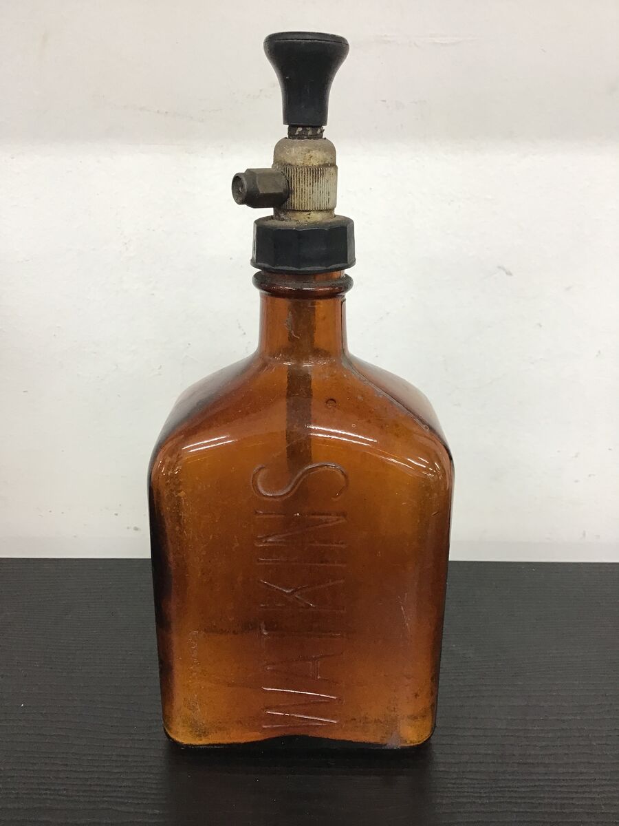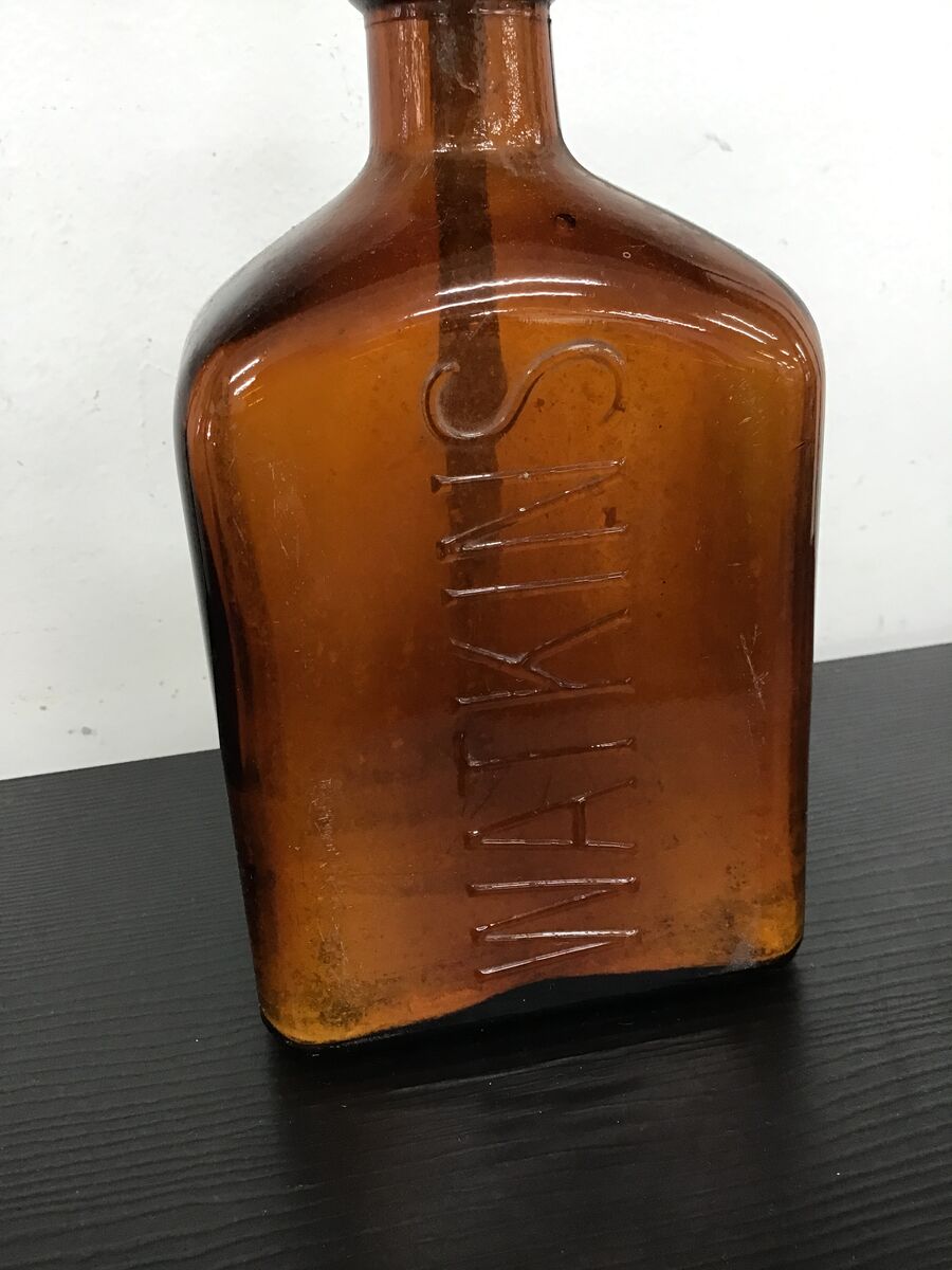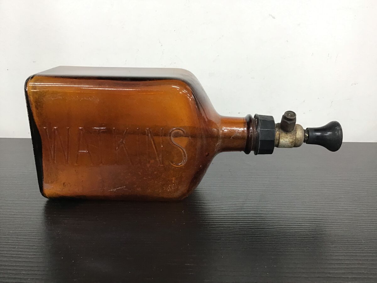 Vintage amber glass bottle with embossed labelling, 'Watkins':