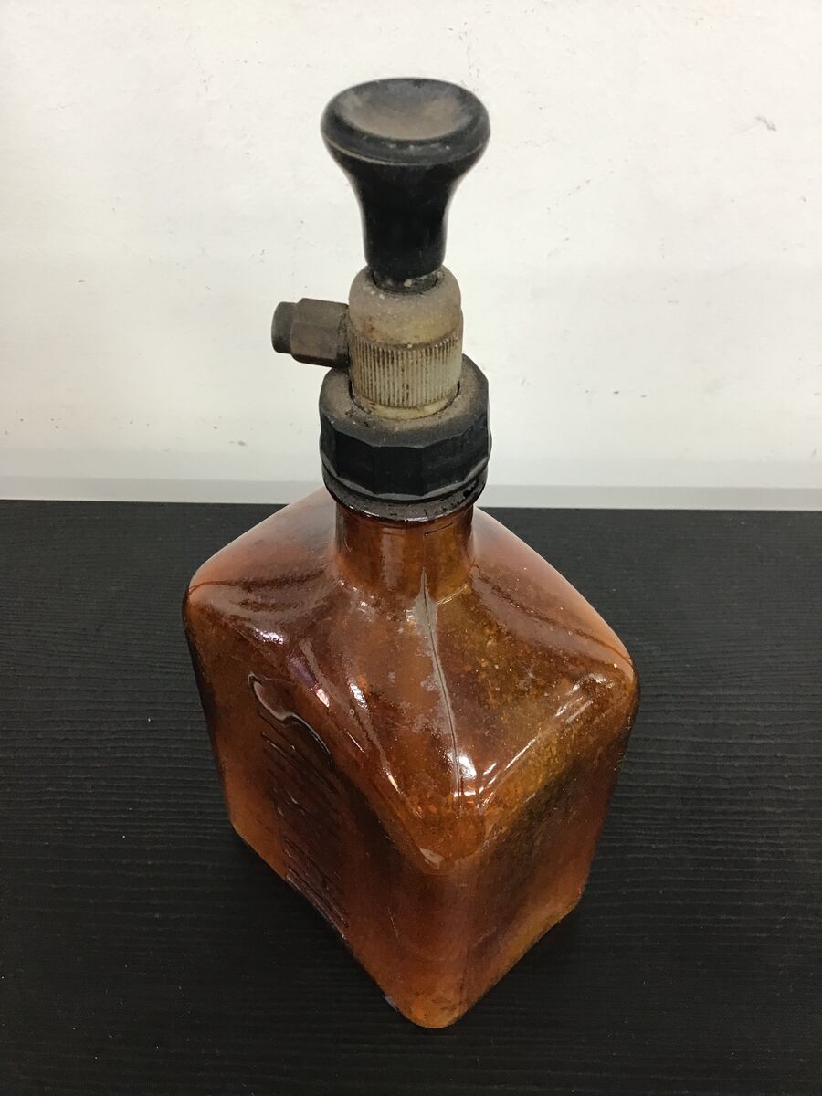 Bottle measures 9.5 x 6.5 cm at the base and is 17 cm tall. The handle fixture is 6.5 cm tall.