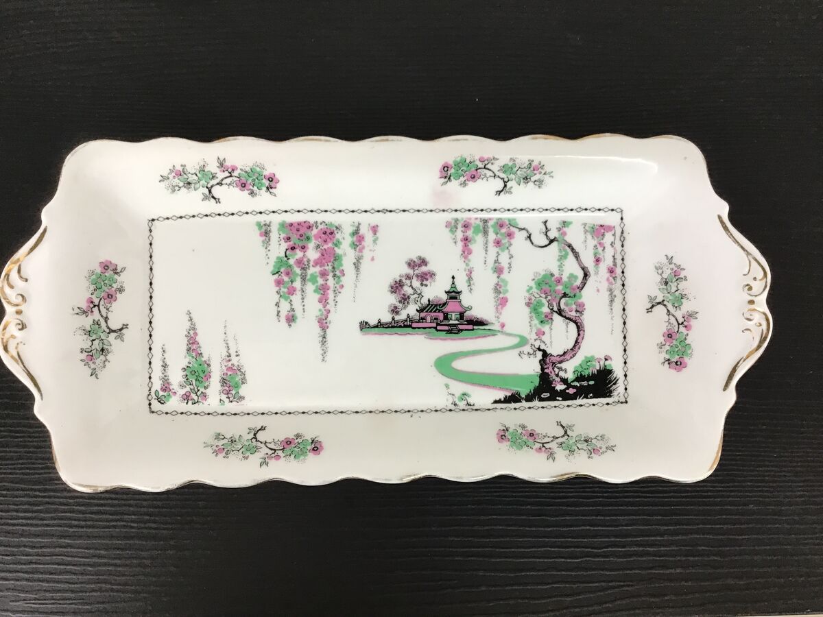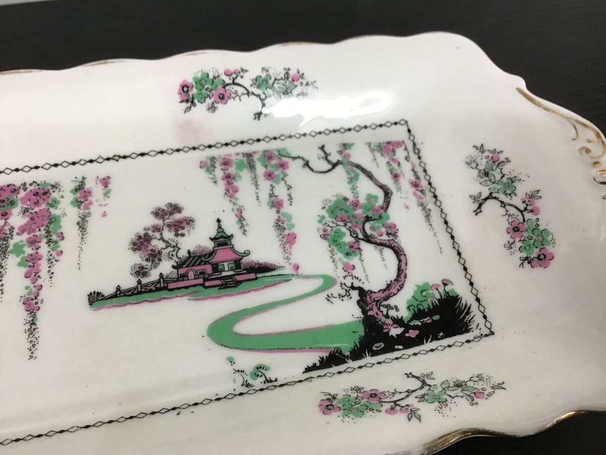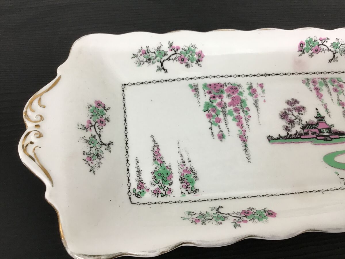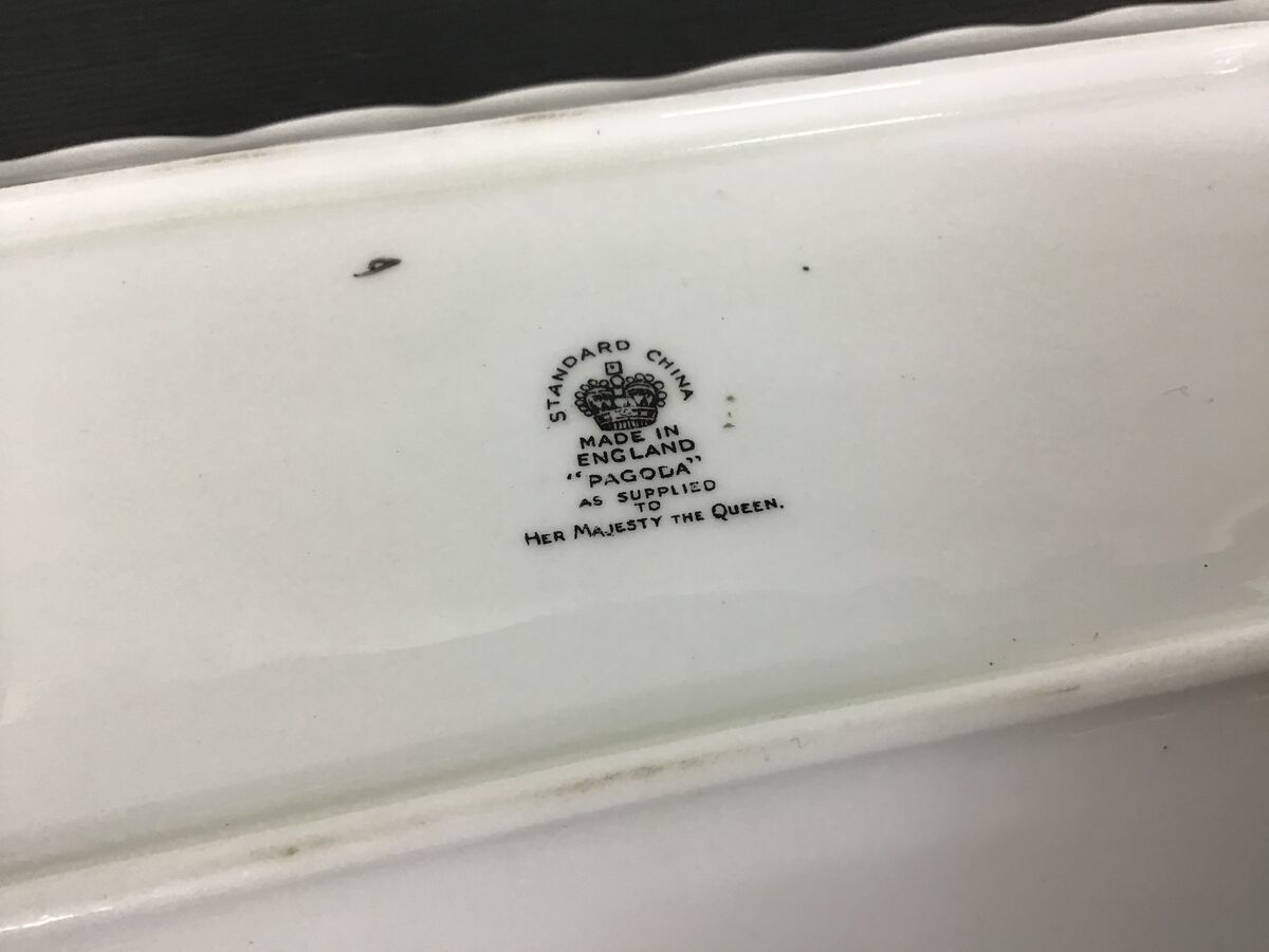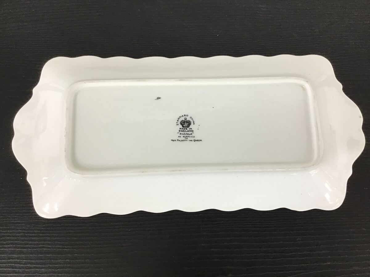 Art Deco era Standard China England rectangular sandwich plate - 'Pagoda' pattern, 'as supplied to Her Majesty The Queen'.