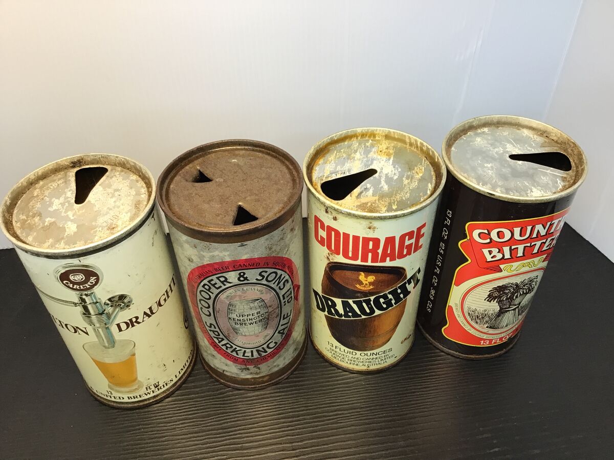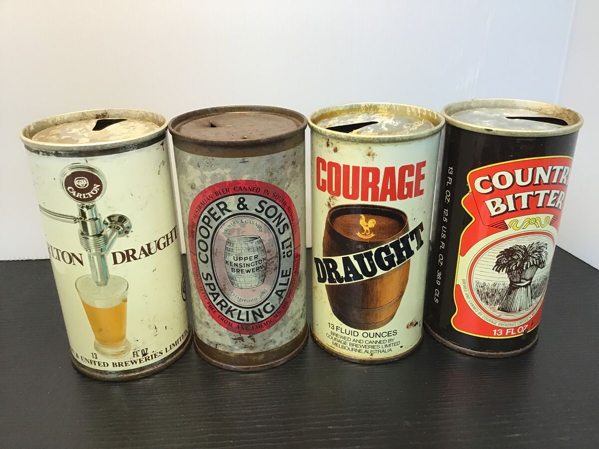 Lot of four vintage steel sided Australian beer cans, all 13 Fluid Ounce size: