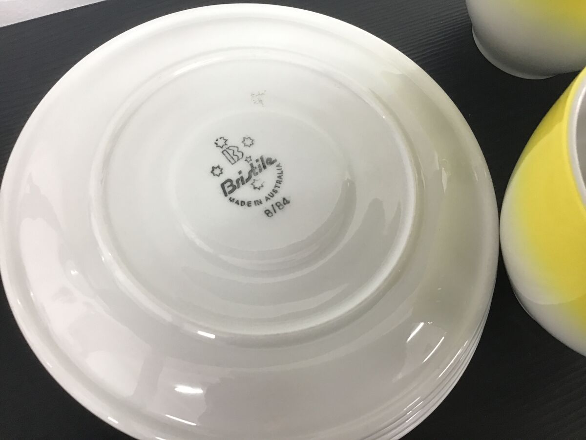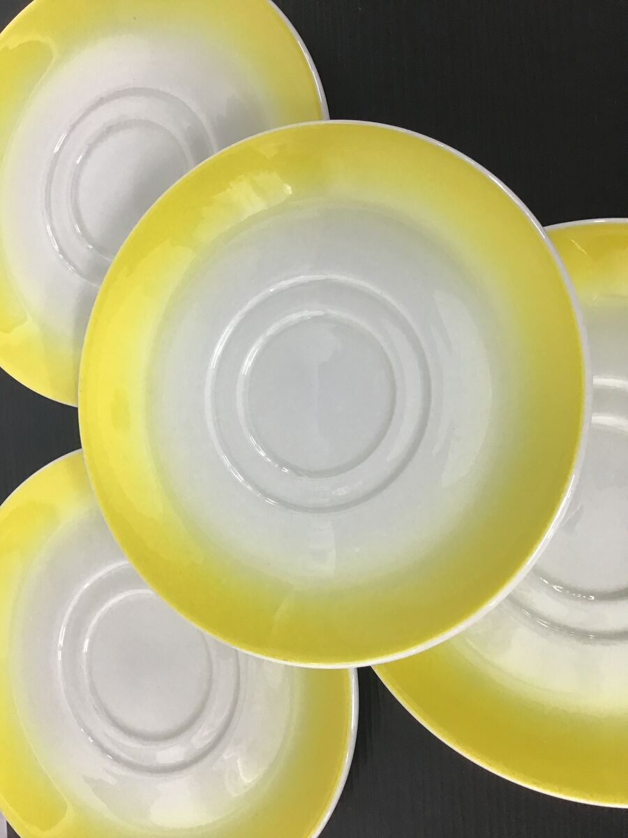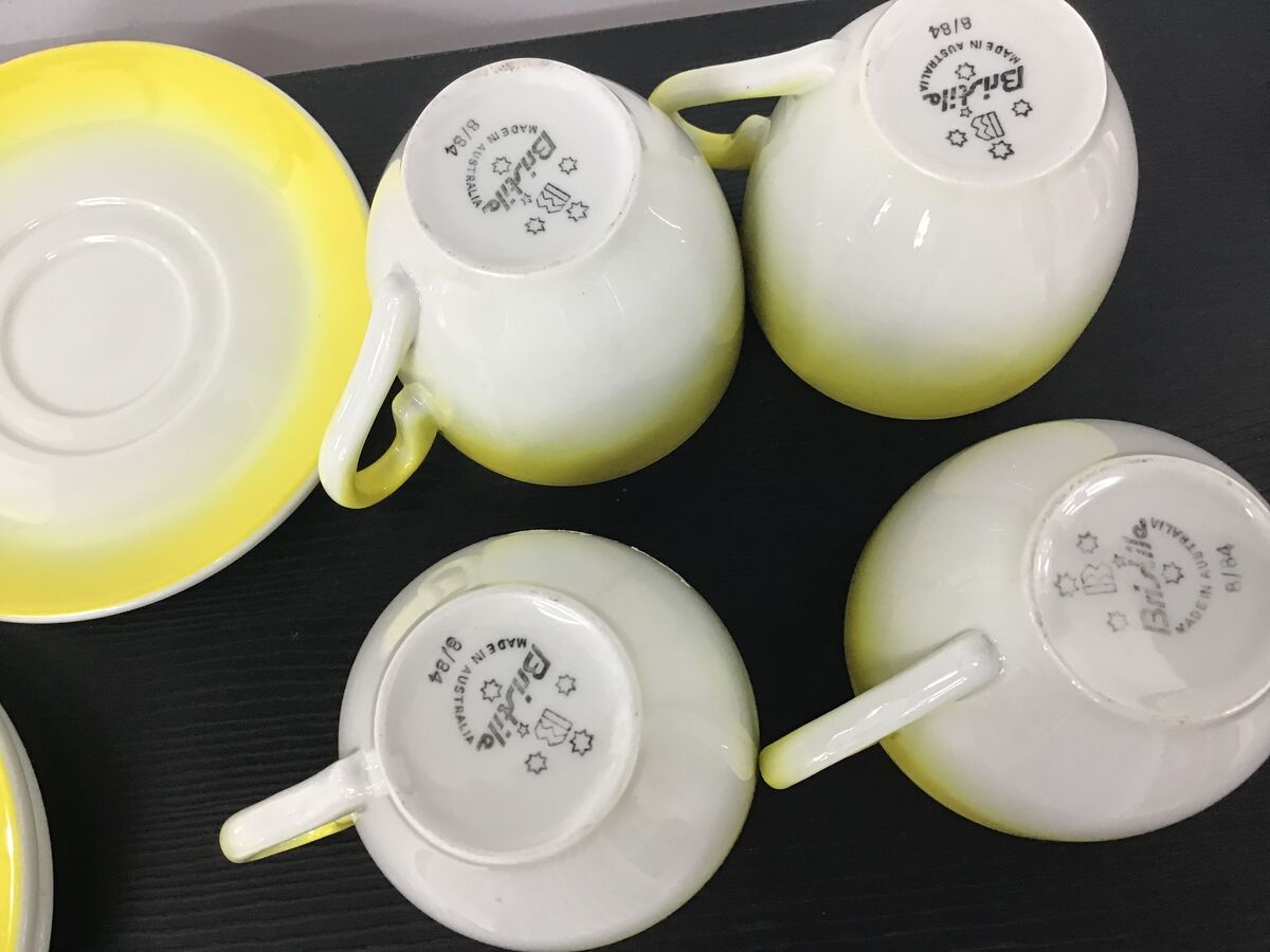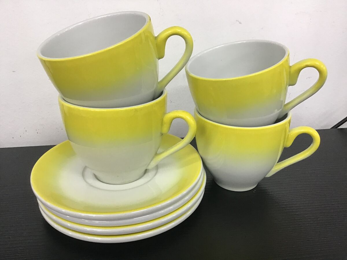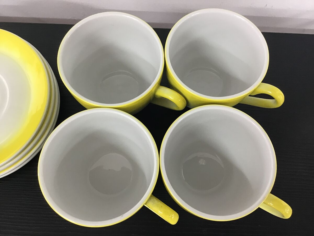 Lot of 4 graduated yellow to white teacups and saucer made by Bristile/Wembley Pottery: