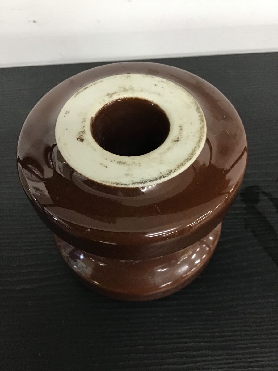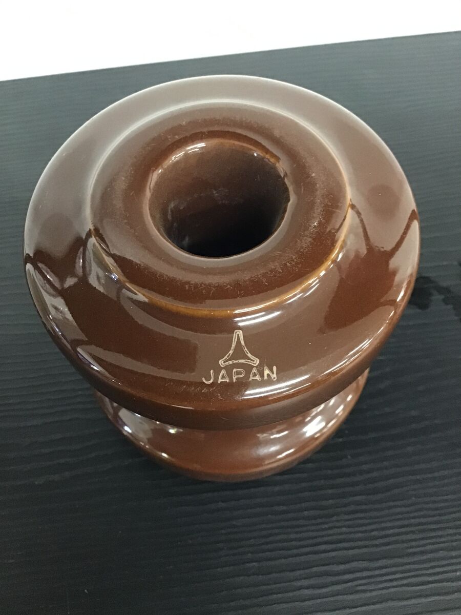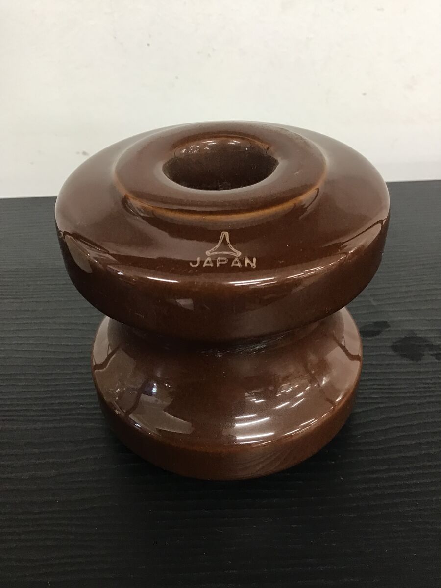 Vintage brown ceramic telephone line insulator, stamped on the top 'Japan'.