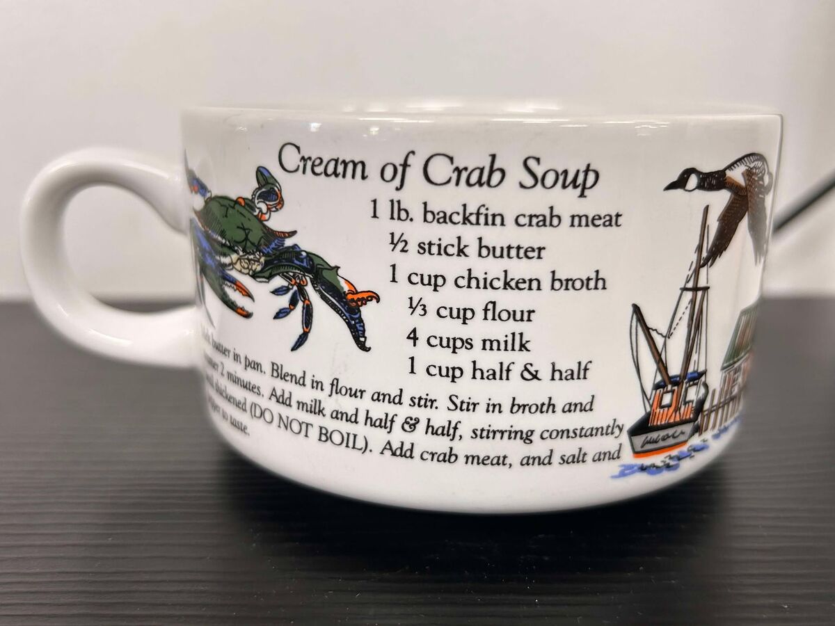 A decent-sized soup bowl/mug featuring Chesapeake Bay and a Cream of Crab Soup recipe. Is anyone game enough to try making it?