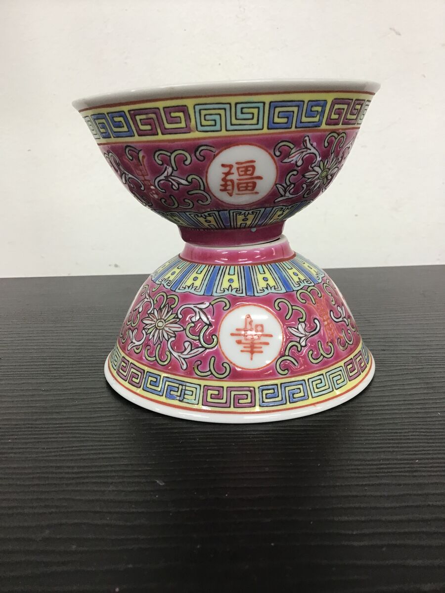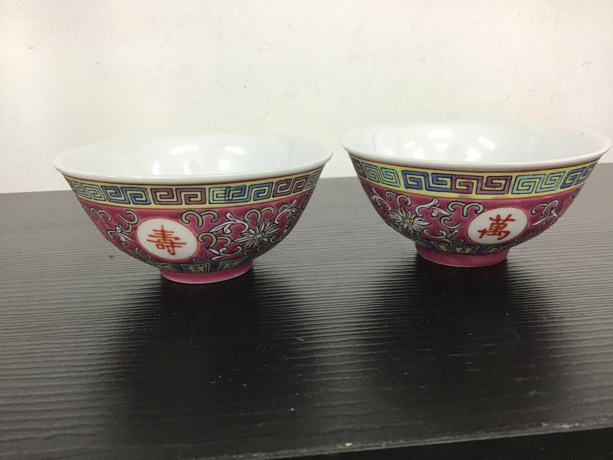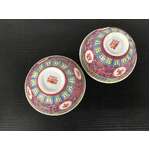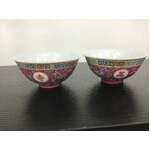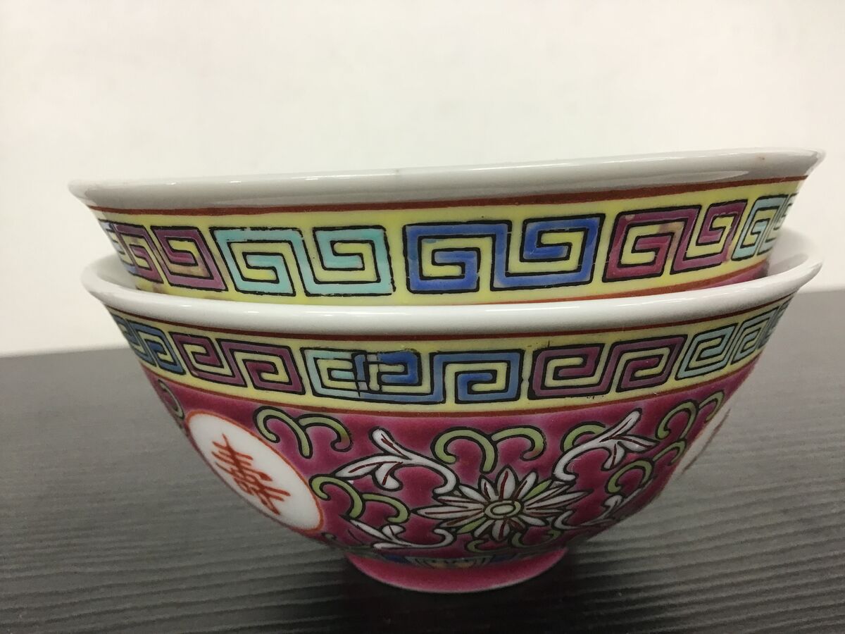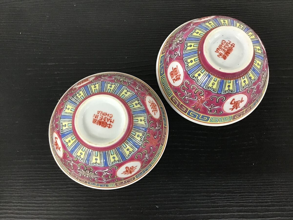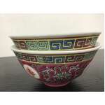 Two small vintage Chinese porcelain bowls, featuring the classic Mun Shou (万寿) design and crafted in Jingdezhen, China – the renowned porcelain capital.