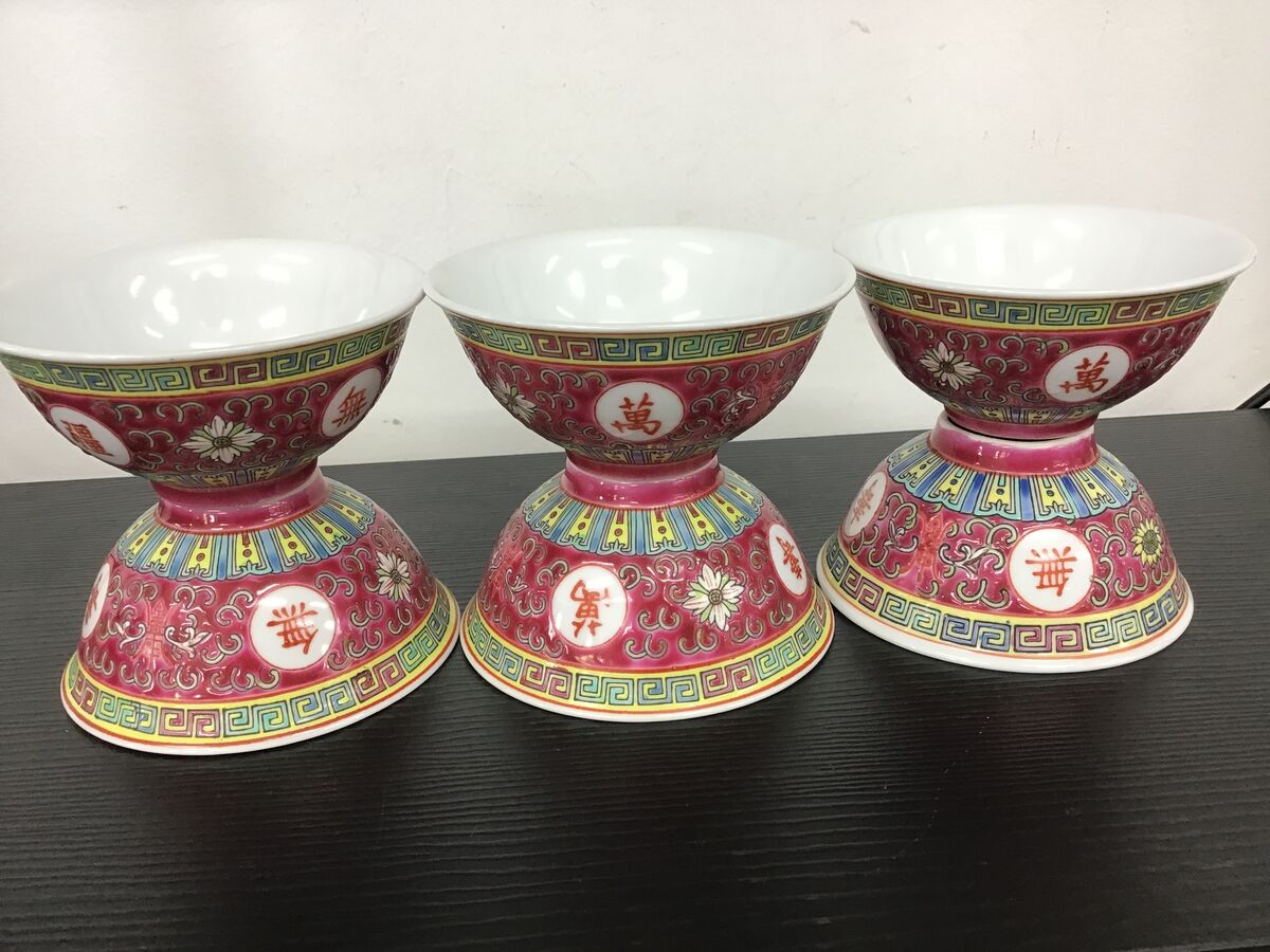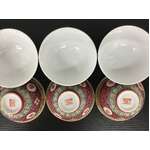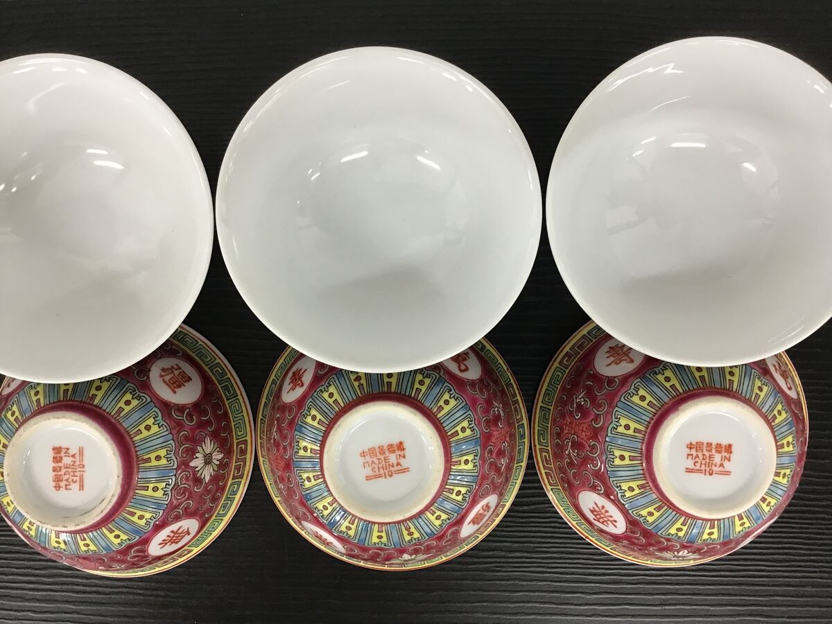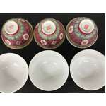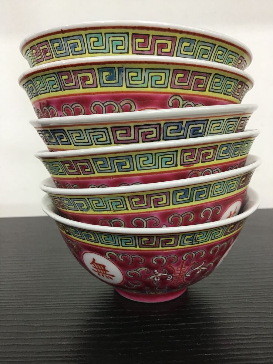 Lot of 6 vintage Chinese porcelain rice bowls, featuring the classic Mun Shou (万寿) design and crafted in Jingdezhen, China – the renowned porcelain capital.
