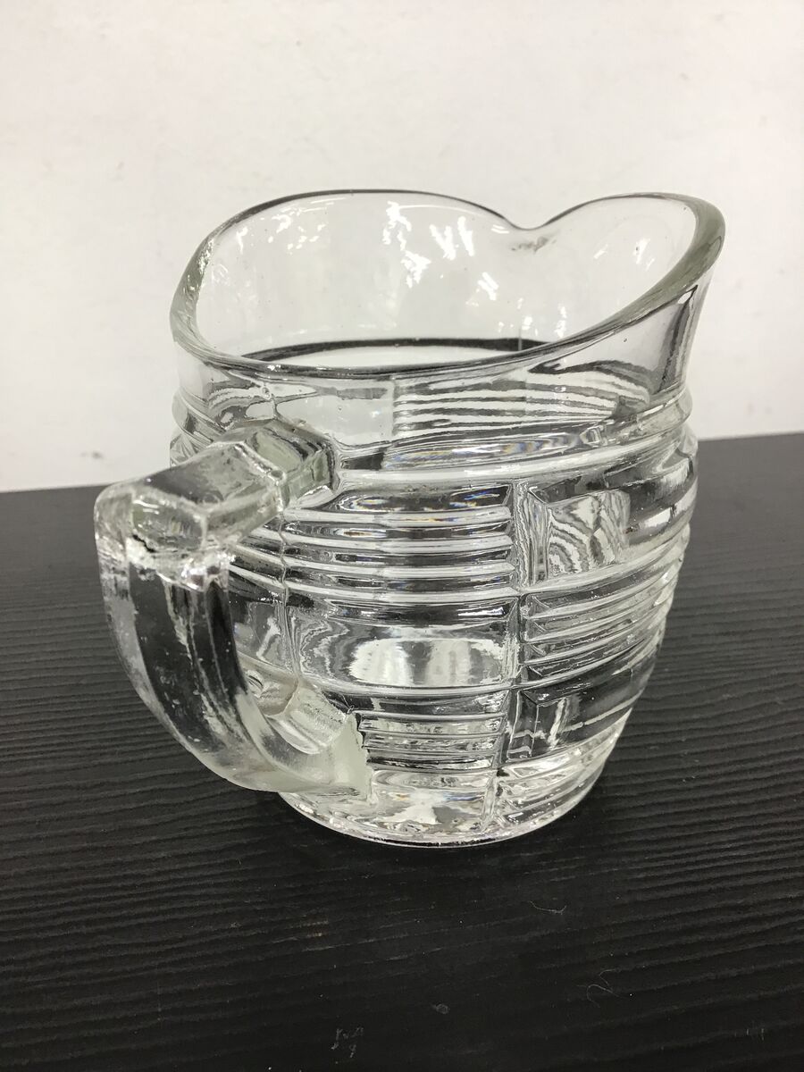 Depression glass era creamer jug made by Crown Crystal Australia; textured stripes and checks pattern.