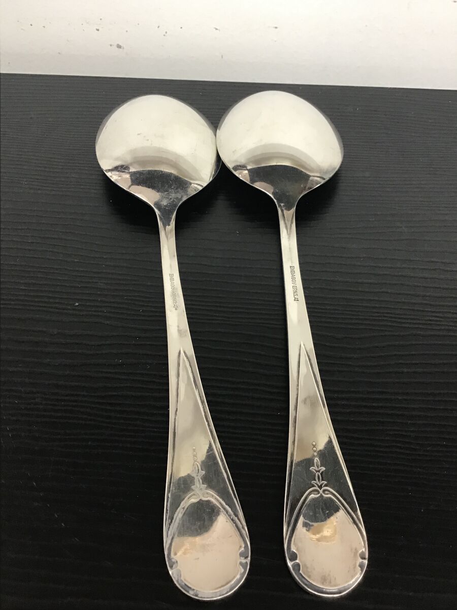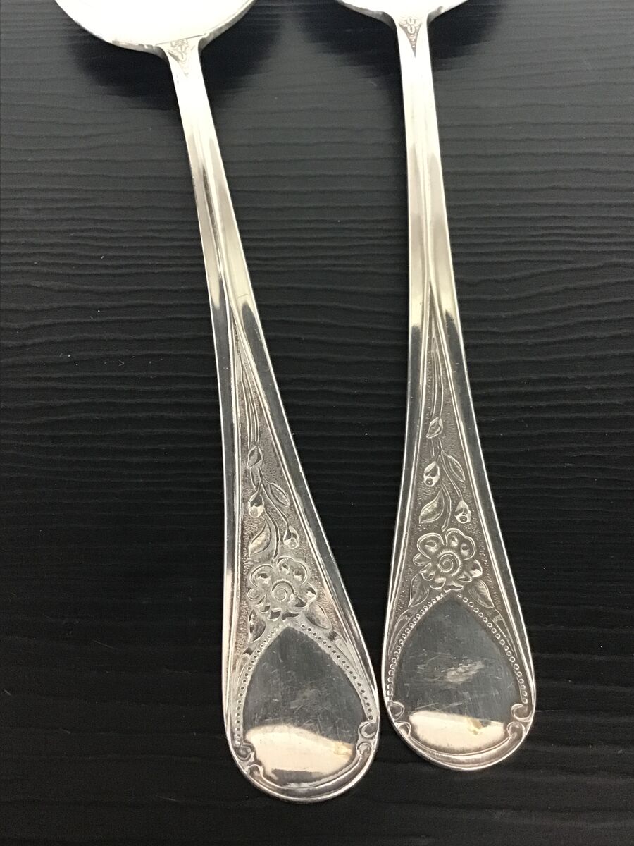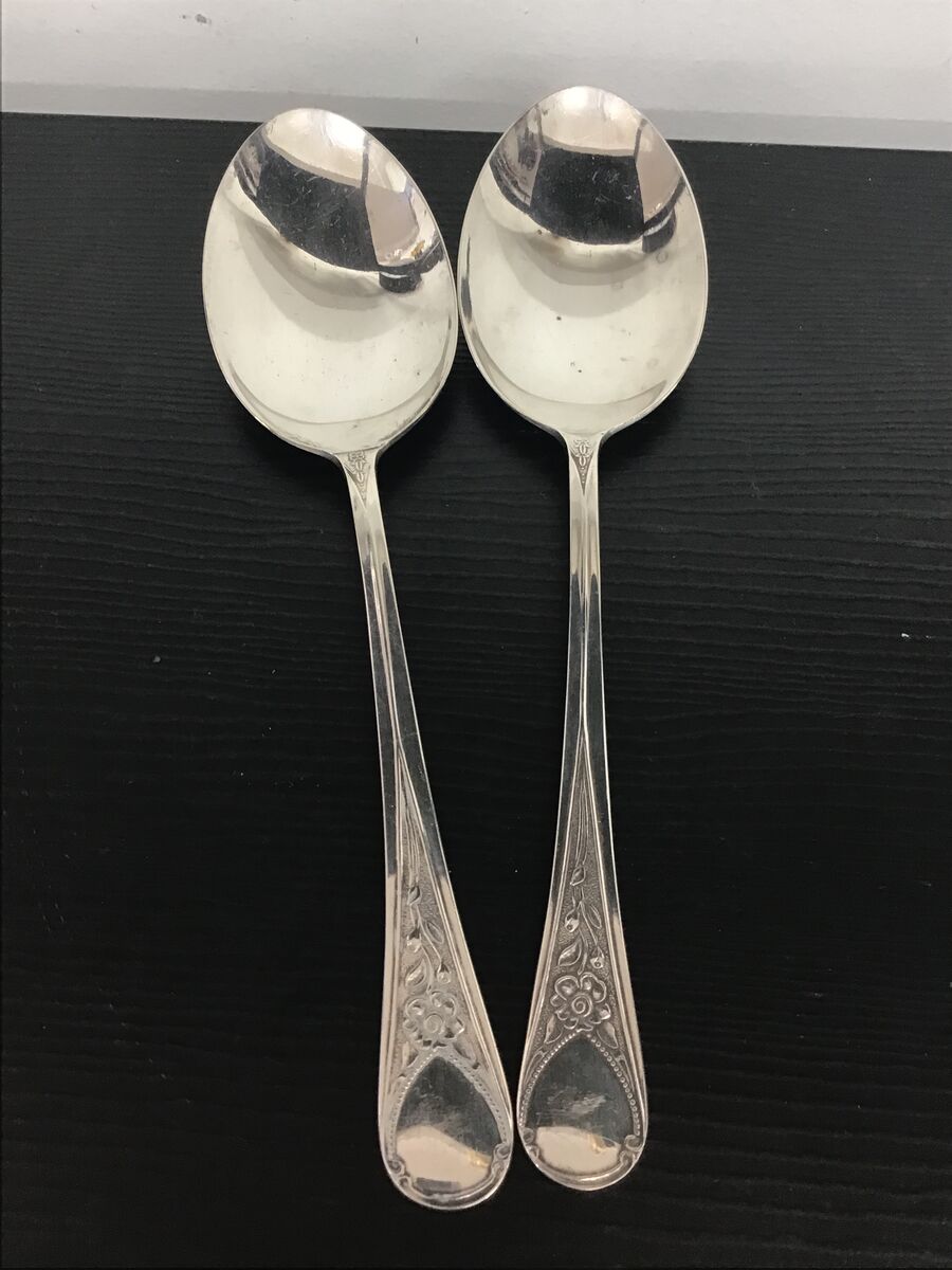 Pair of silverplate serving spoons: