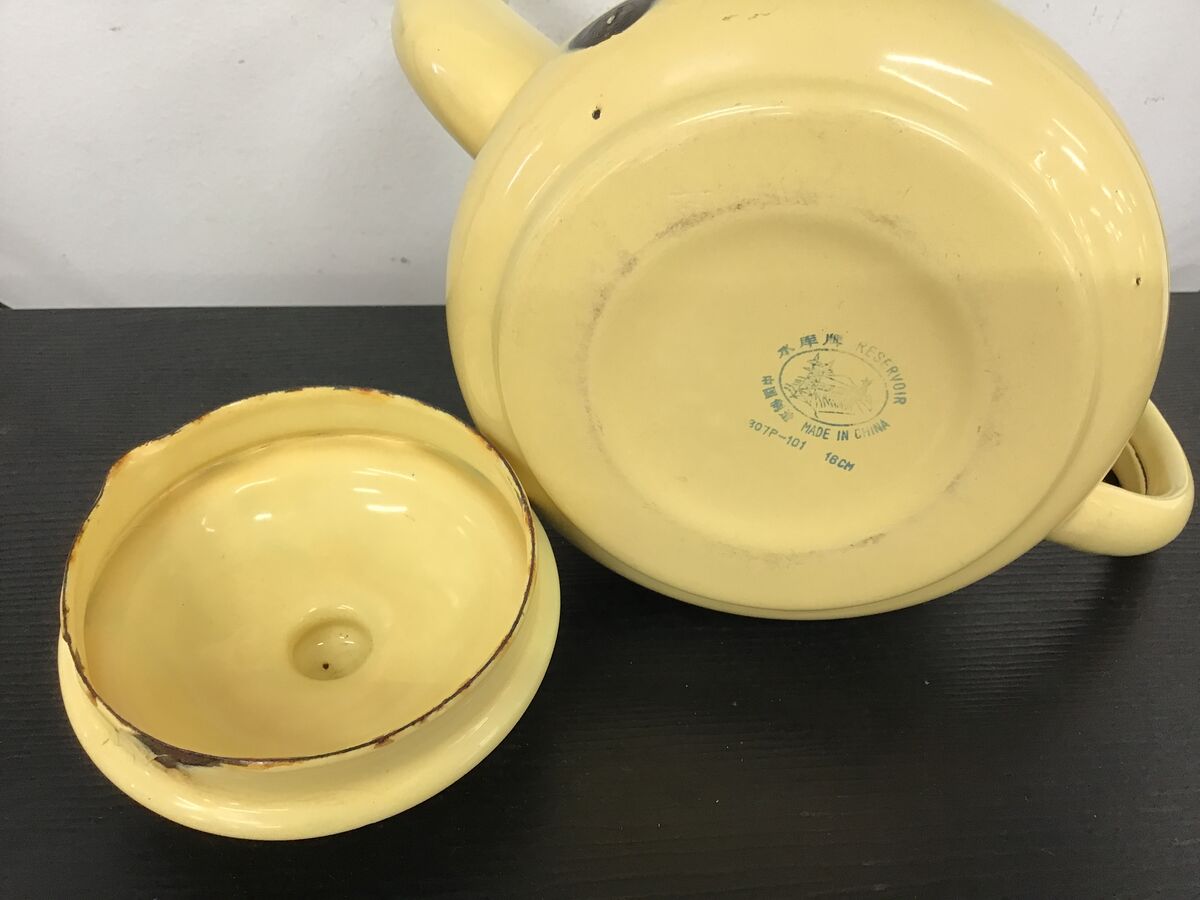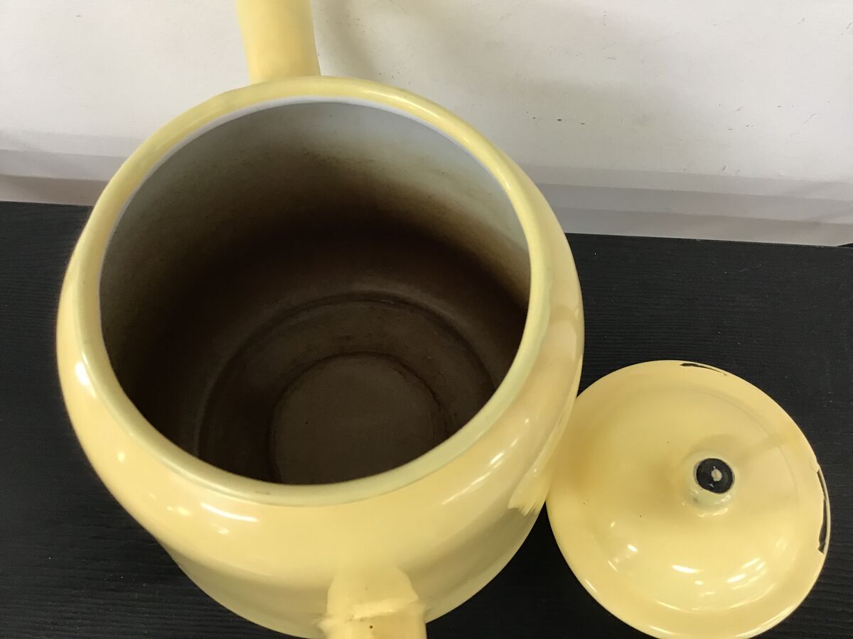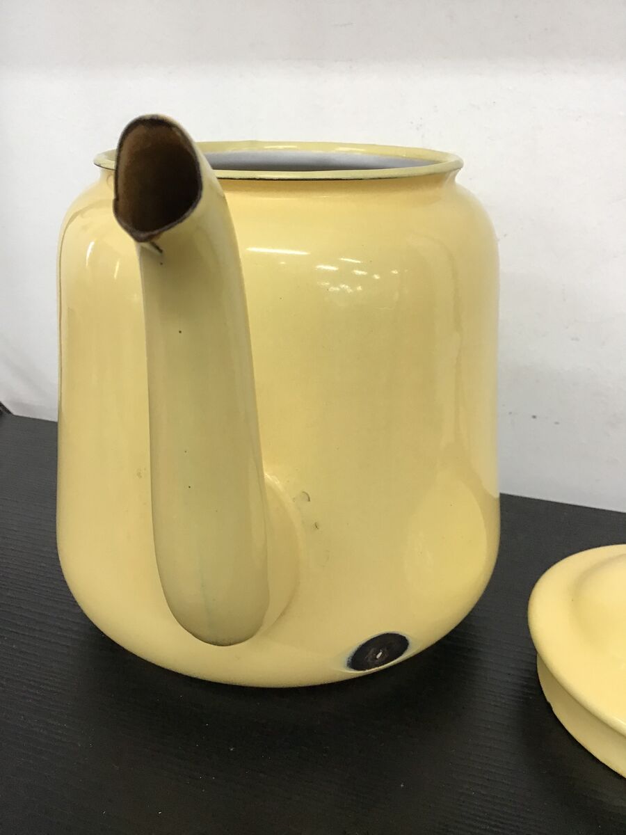 - Several breaks to the enamel (the lid, handle and base, plus one inside)