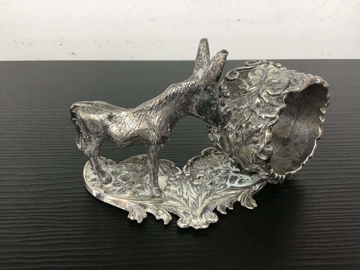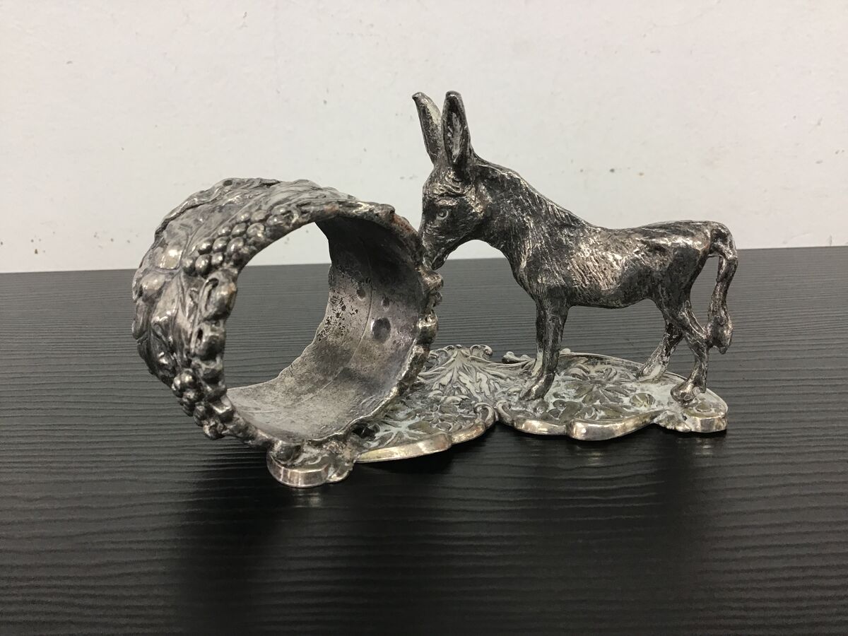 - The base plate looks like silver plate but the donkey and napkin ring are a thick cast metal