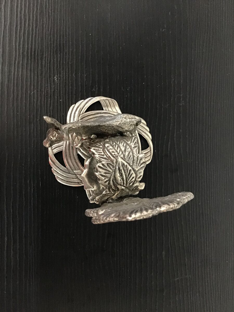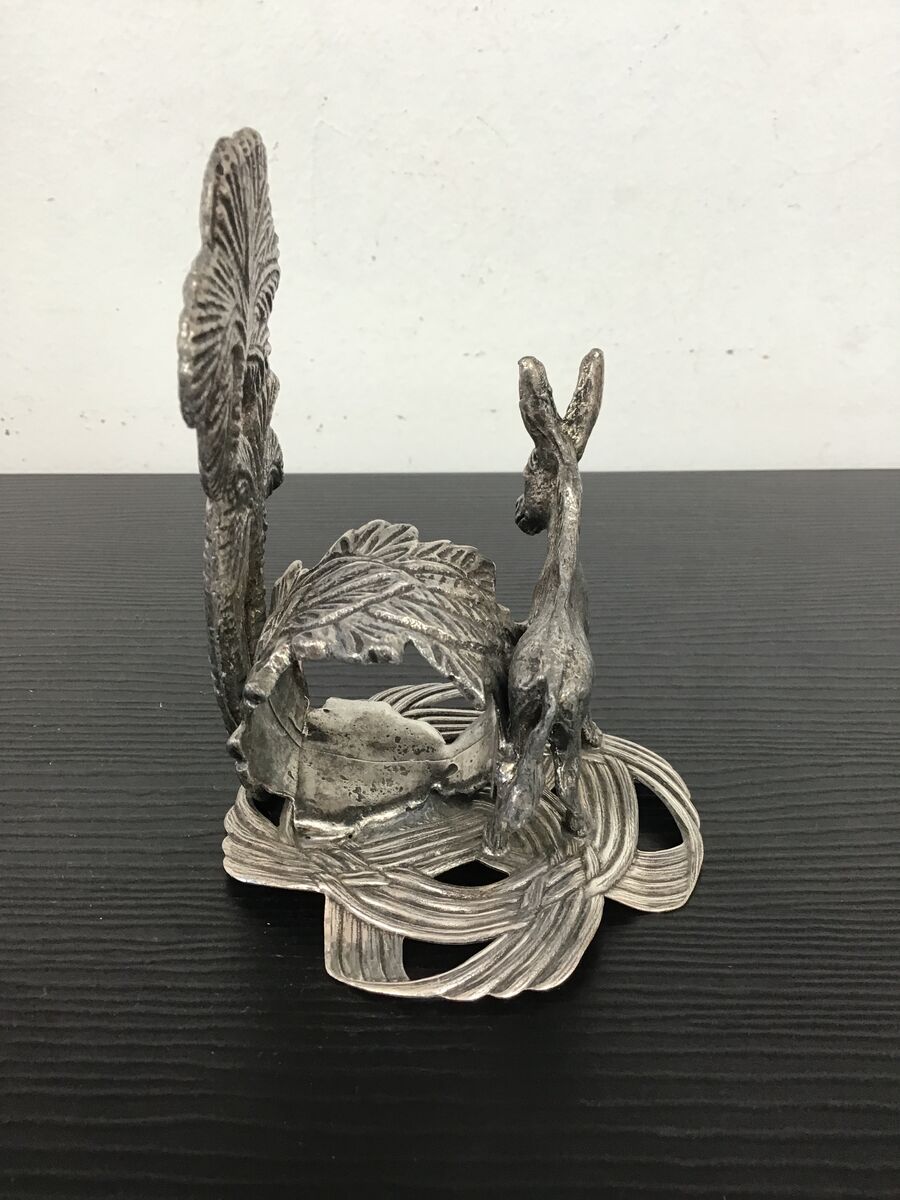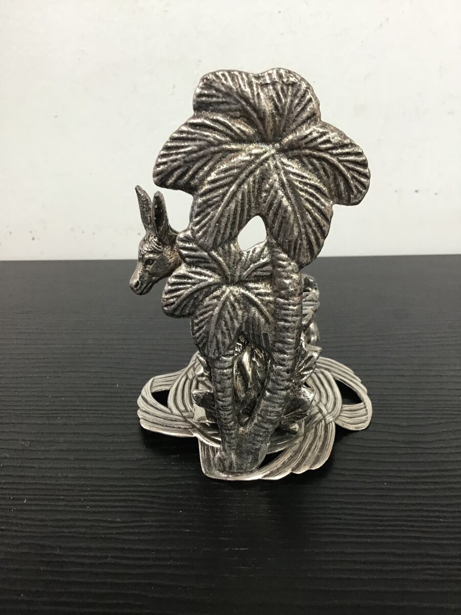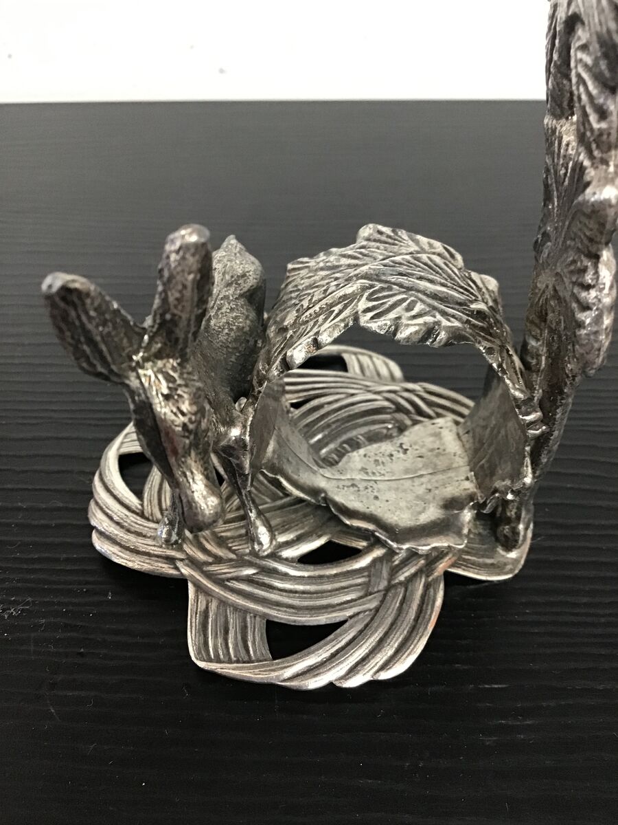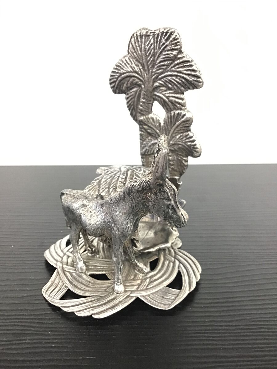- The base plate looks like silver plate but the donkey, palm tree and napkin ring (made to look like it is formed from leaves) are a thick cast metal, pewter or an alloy?