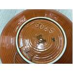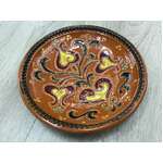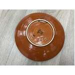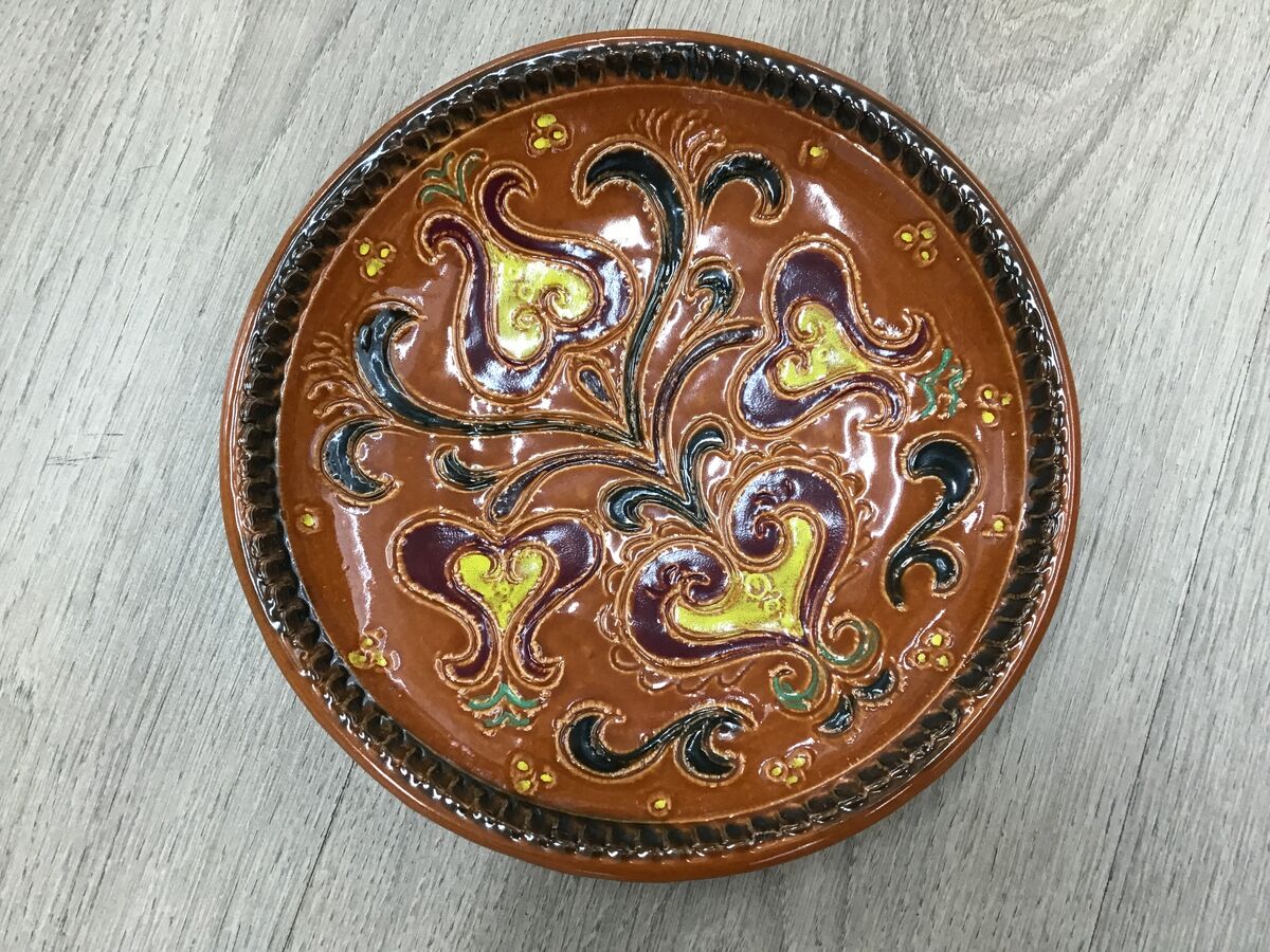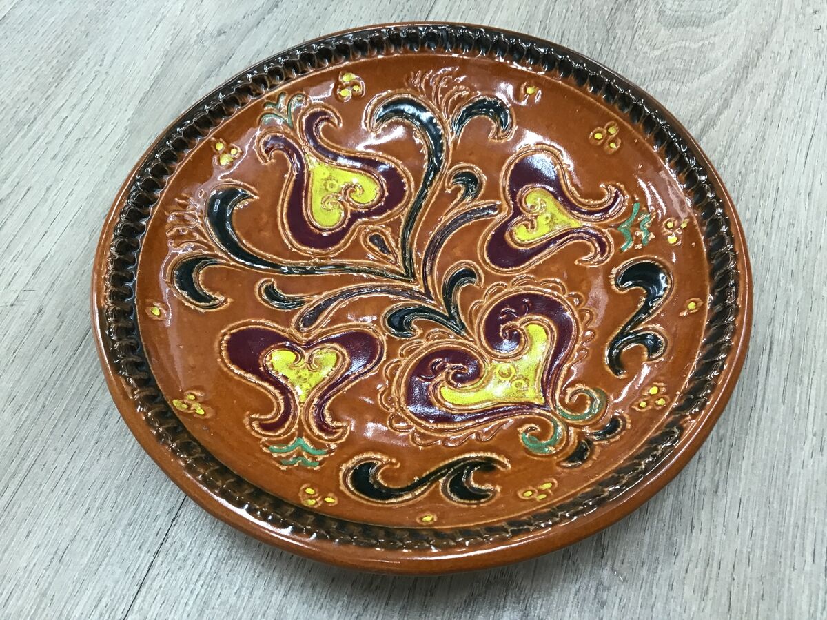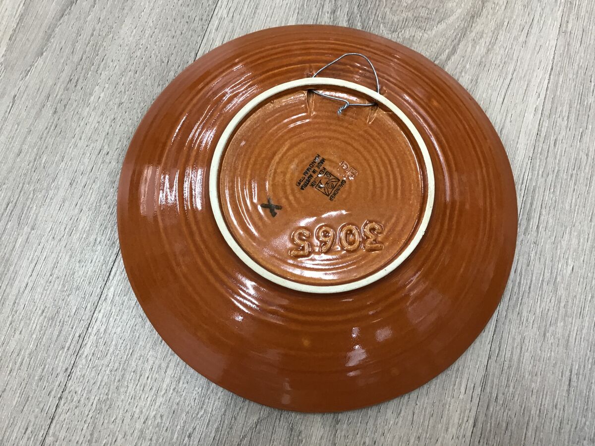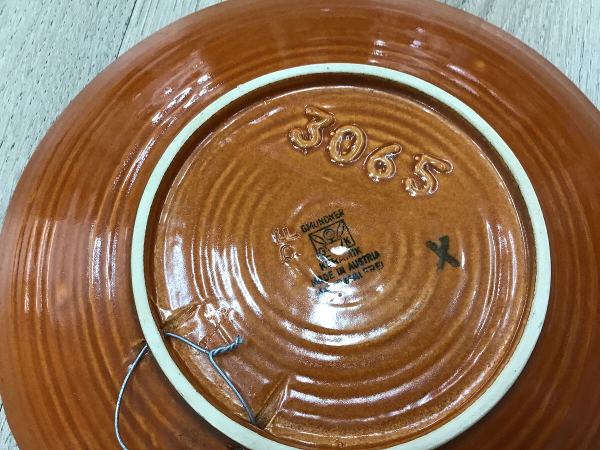 Vintage wall plate, made by Gmundner, Austria. Orange colour with textured yellow and red floral motif.