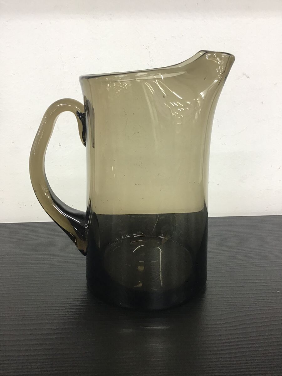 Jug: 15 cm tall, 13 cm handle to spout, 8.5 cm diameter.