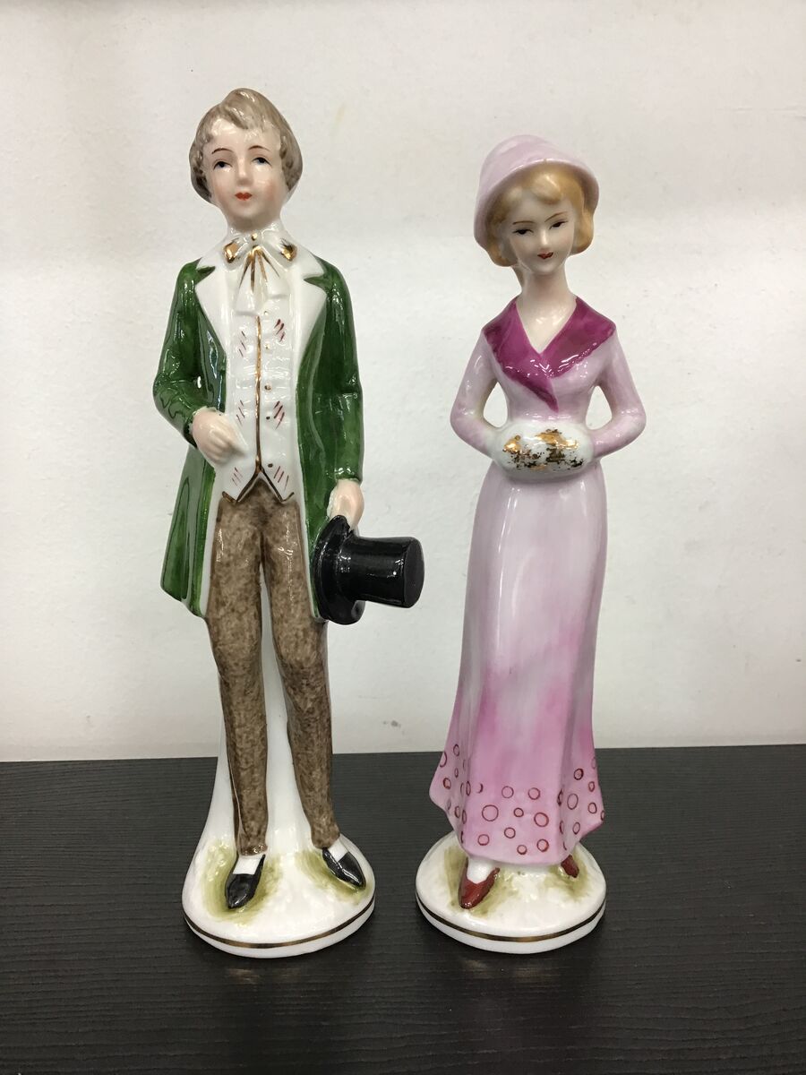 Elegant lady and gentleman ceramic figures - no markings to indicate maker but thought to be Japanese from the 50's.