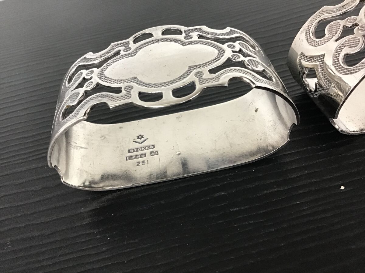 Vintage pair of Australian silver plate napkin rings made by Stokes & Sons, Melbourne.