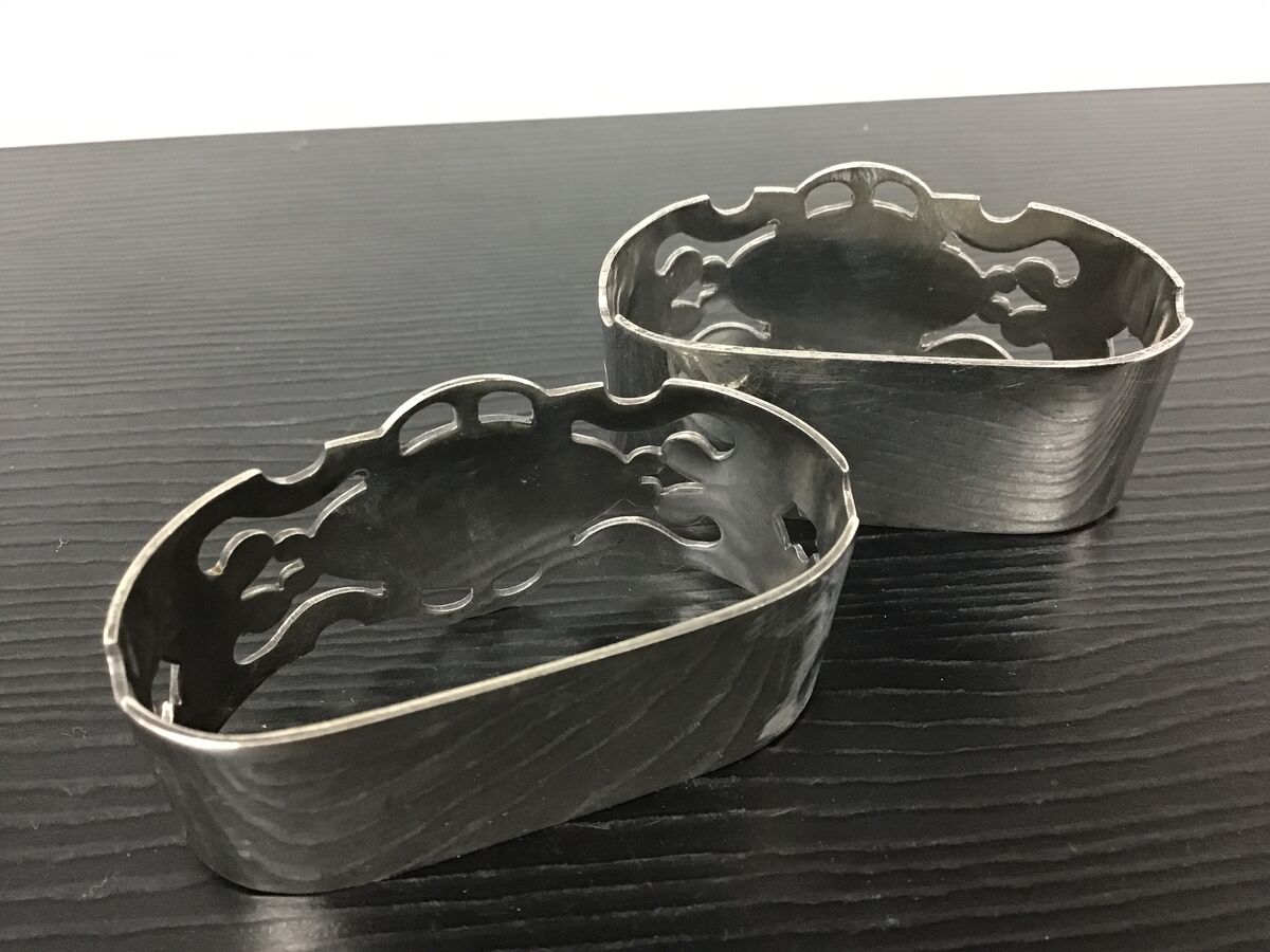 - Pierced scrollwork with a blank cartouche on each napkin ring, ready for monogramming or to leave plain