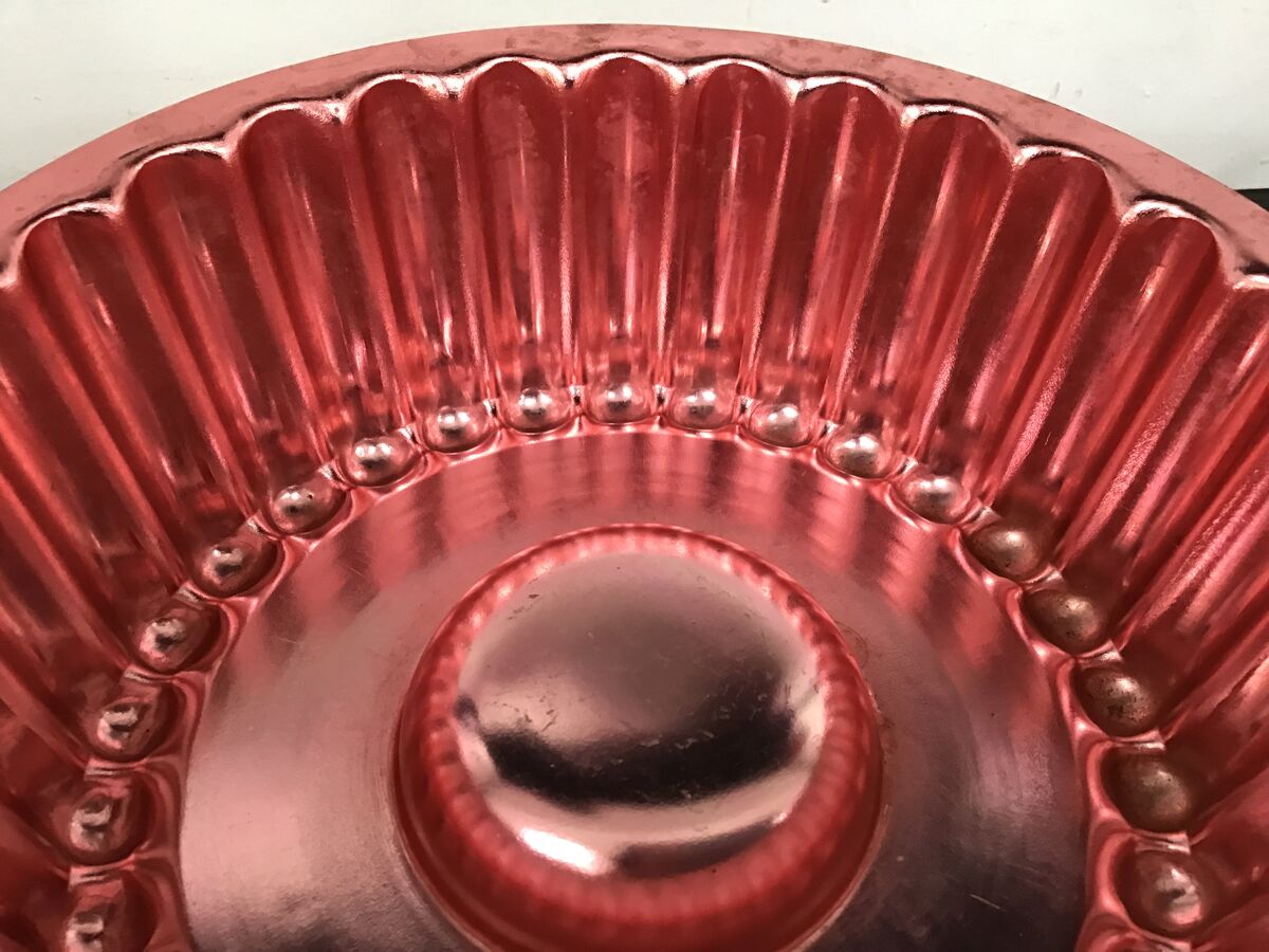 Pink anodised jelly mould/cake tin: