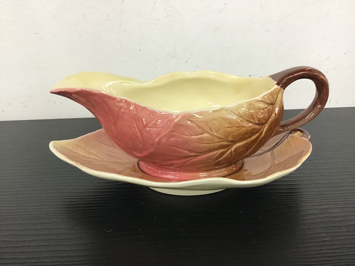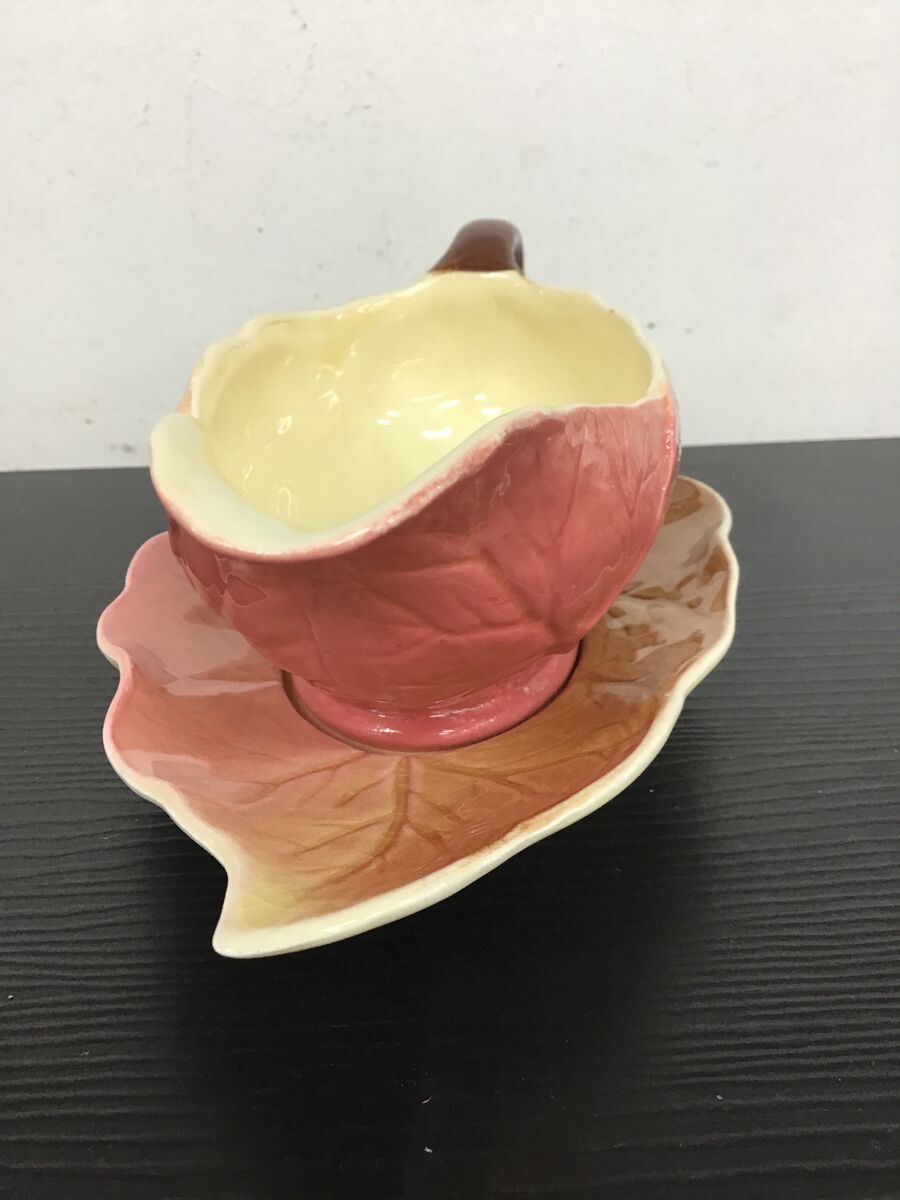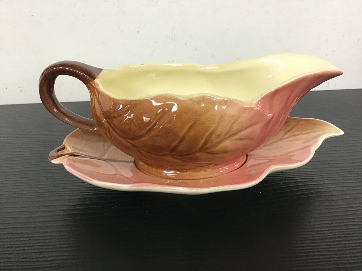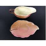 Small sized sauce boat and underplate designed to look leaf-like: