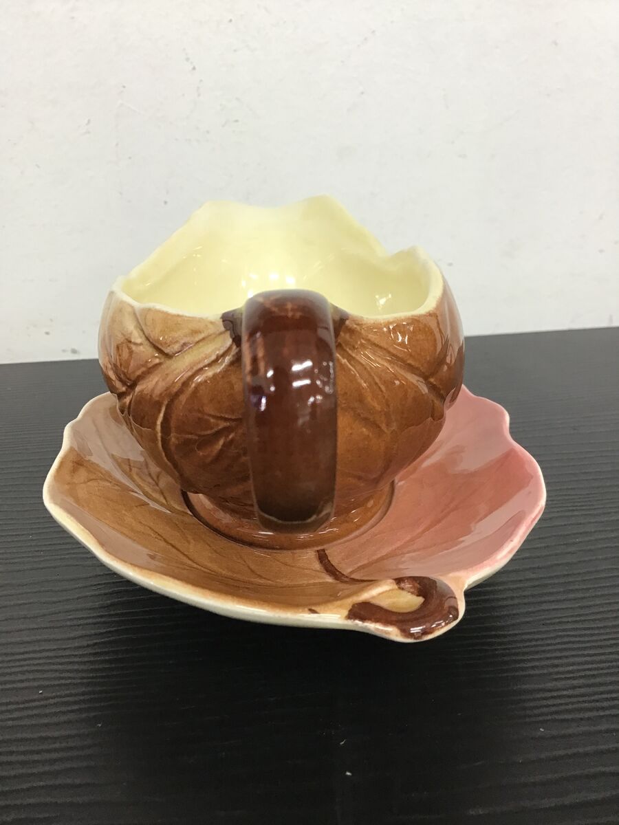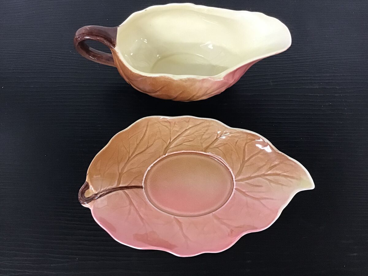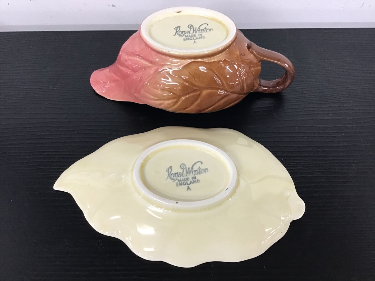 Small sized sauce boat and underplate designed to look leaf-like: