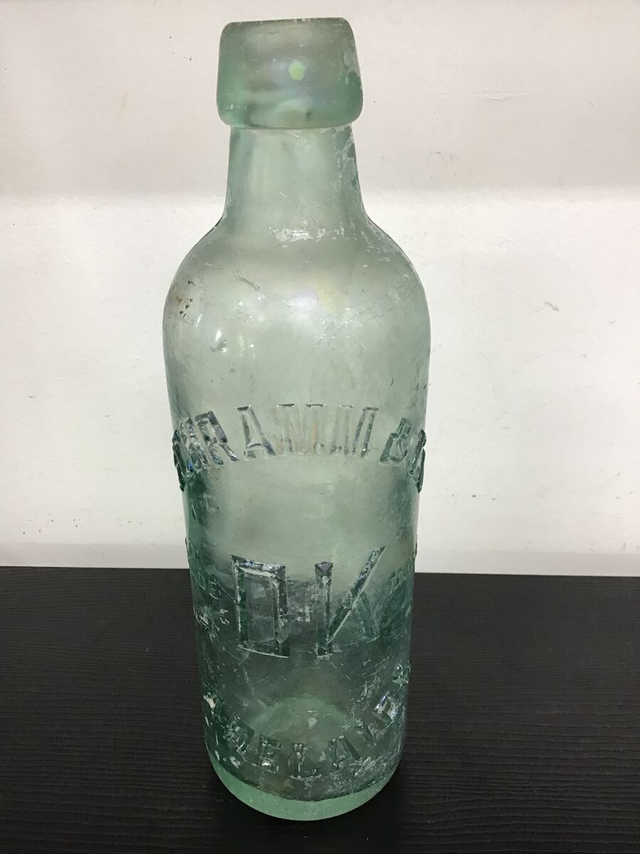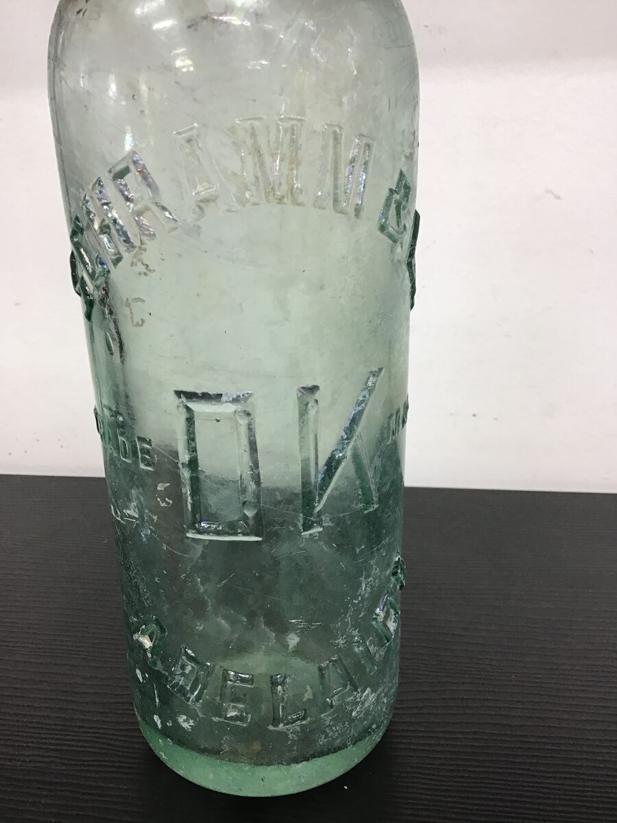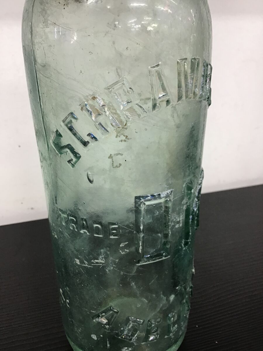 Vintage Schramm & Co Adelaide OK bottle, embossed labelling and an internal Riley style thread.