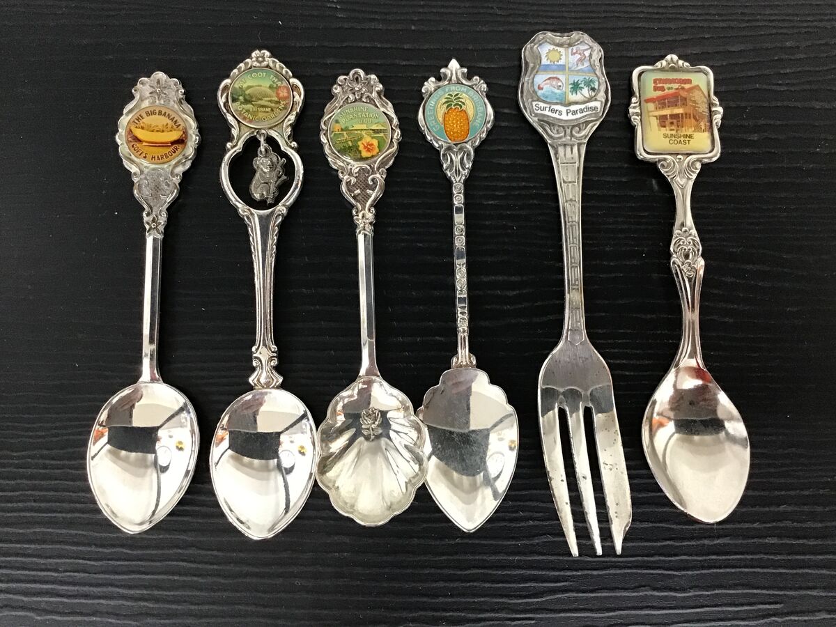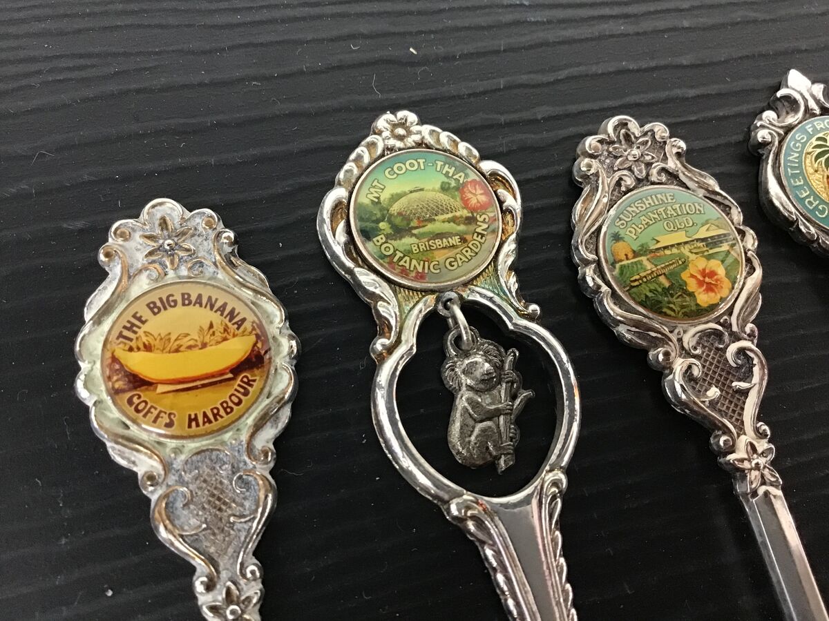 Lot of 4 vintage souvenir spoons and 1 cake fork, from various Queensland landmarks: