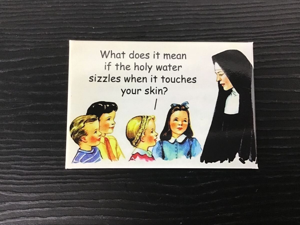 "What does it mean if the holy water sizzles when it touches your skin?"